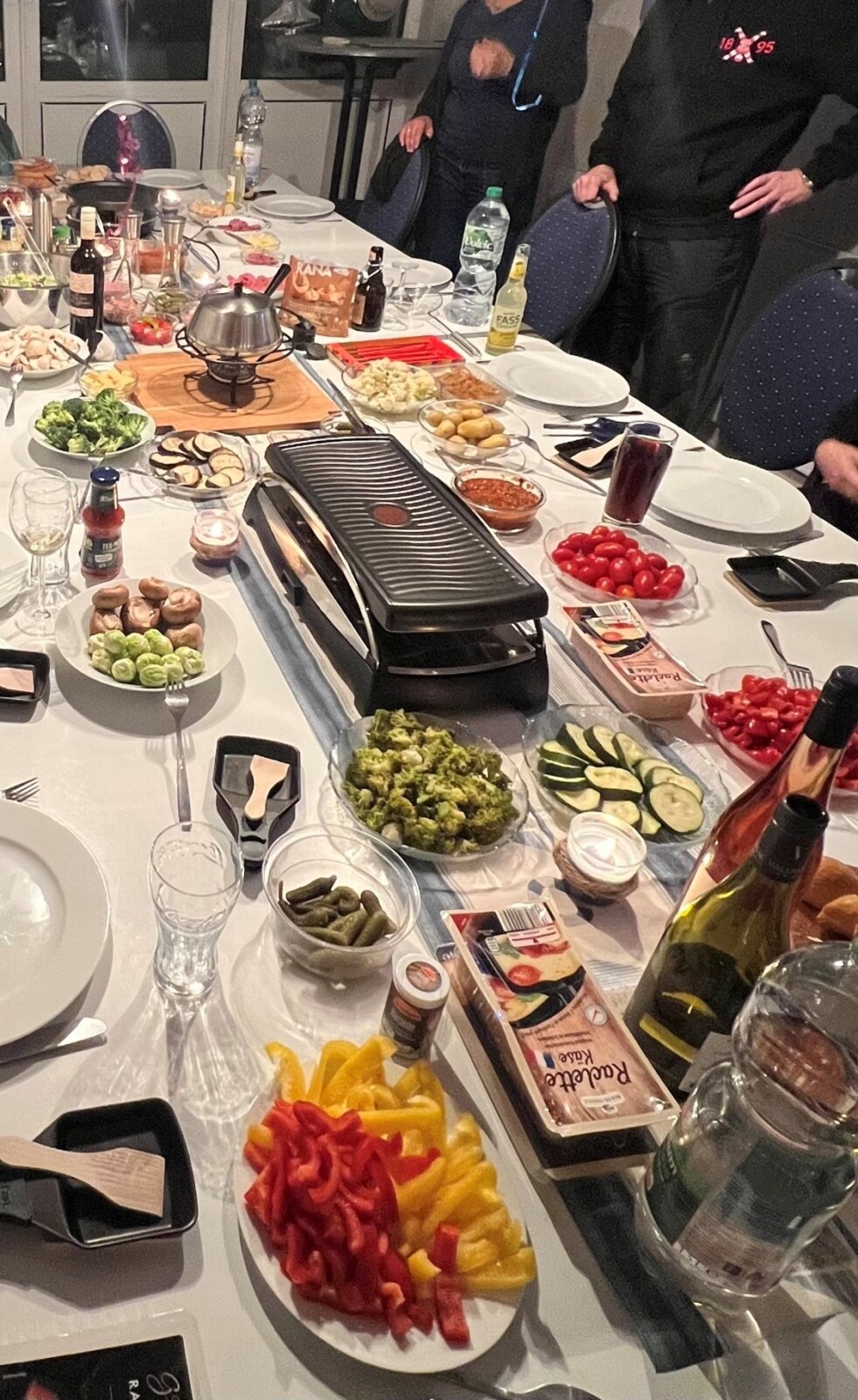 Der Einladung von Dagmar und Michael, den Jahreswechsel gemeinsam im Clubhaus zu feiern, waren 12 Personen gefolgt. Nach gut durchdachter Orga über eine für alle offene Liste kamen wir am 31.12. um 19 Uhr zusammen und begannen, in der Küche zu werkeln, die Raclettegeräte und den Fonduetopf aufzubauen und die Medien zu verkabeln – alles ging Hand in Hand und mit guter Laune.