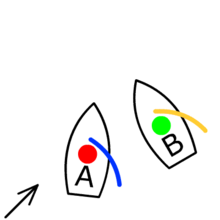 Auf der einen Seite gibt es die Möglichkeit, dass die beiden Schiffe den Wind von der selben Seite haben. Das Segel schlägt also bei beiden Schiffen entweder nach Backbord oder nach Steuerbord, die Fahrzeuge fahren, nicht parallel, in dieselbe Richtung. Nun muss es ein Segelboot geben, dass näher in der Richtung aus der der Wind kommt ist als das andere. Die Position dieses Fahrzeug ist luvwärtig. Die Position des Schiffes, das weiter entfernt von der Richtung ist aus der der Wind kommt heißt leewärtig. In diesem Fall muss das luvwärtige Fahrzeug ausweichen.