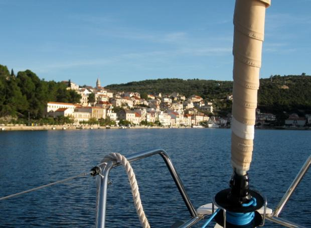 Wir starteten mit einer Flotille von 7 Booten (5 davon mit SKU Mitgliedern) zum Törn um die Inseln Brac und Hvar in Kroatien. Bei der vorausgegangenen Skipperbesprechung wurde Rogac, ein kleiner Ort auf der Insel Solta als erstes Ziel bestimmt. Das Wetter war gut und nachdem wir die schützende Bucht bei Split verlassen hatten, frischte der Wind auf und wir machten, trotz gereffter Segel, gute Fahrt.