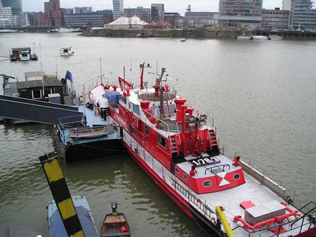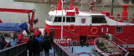 Es gibt in NRW drei dieser Löschboote, die in Köln, Düsseldorf und im Duisburger